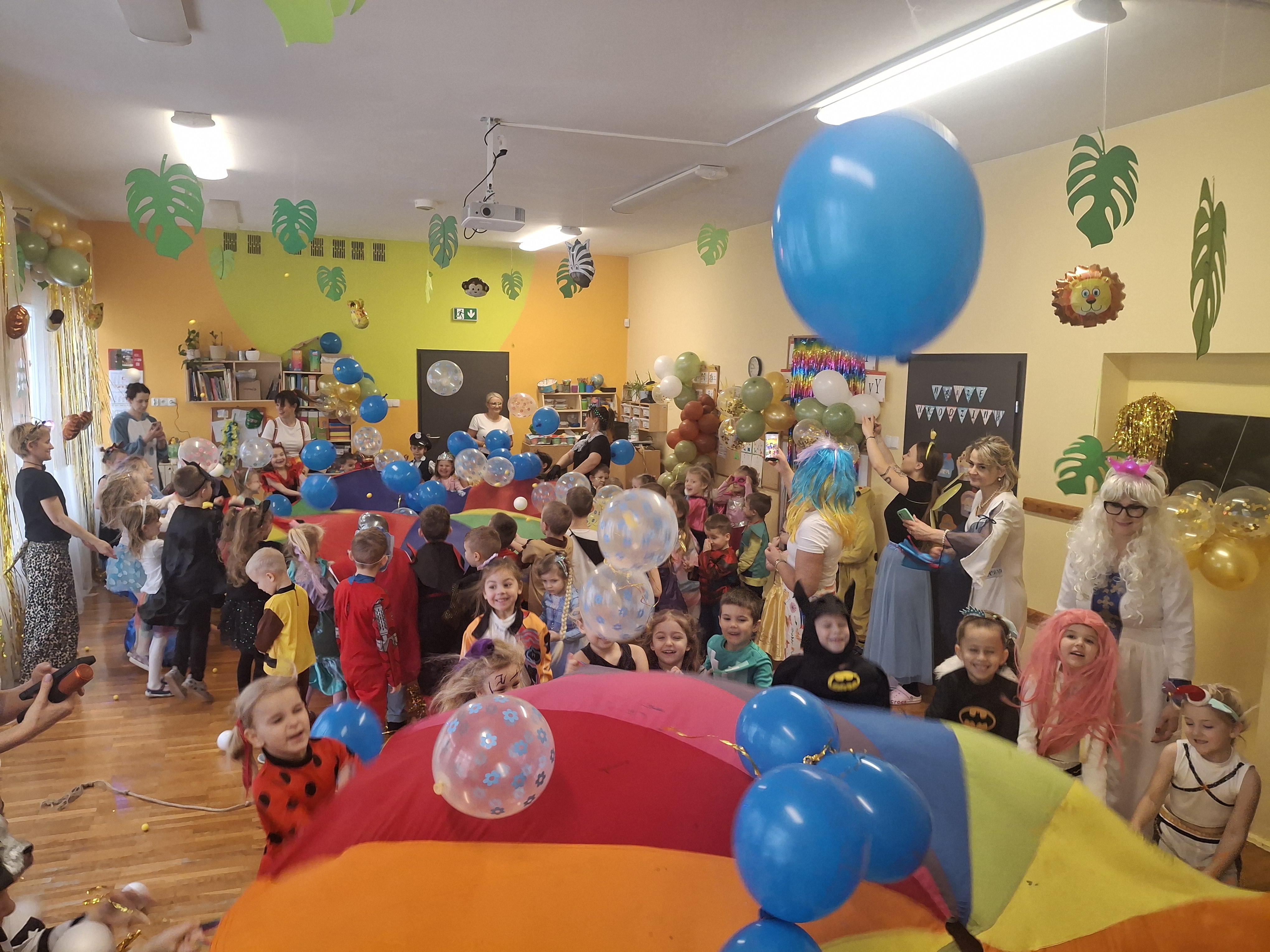 W naszym przedszkolu odbył się wspaniały bal karnawałowy! Dzieci świetnie się bawiły, tańczyły i uczestniczyły w zabawach. Serdecznie dziękujemy Państwu za przygotowanie fantastycznych strojów oraz za przyniesienie słodkiego i owocowego poczęstunku – dzięki Wam nasz bal był jeszcze bardziej radosny!