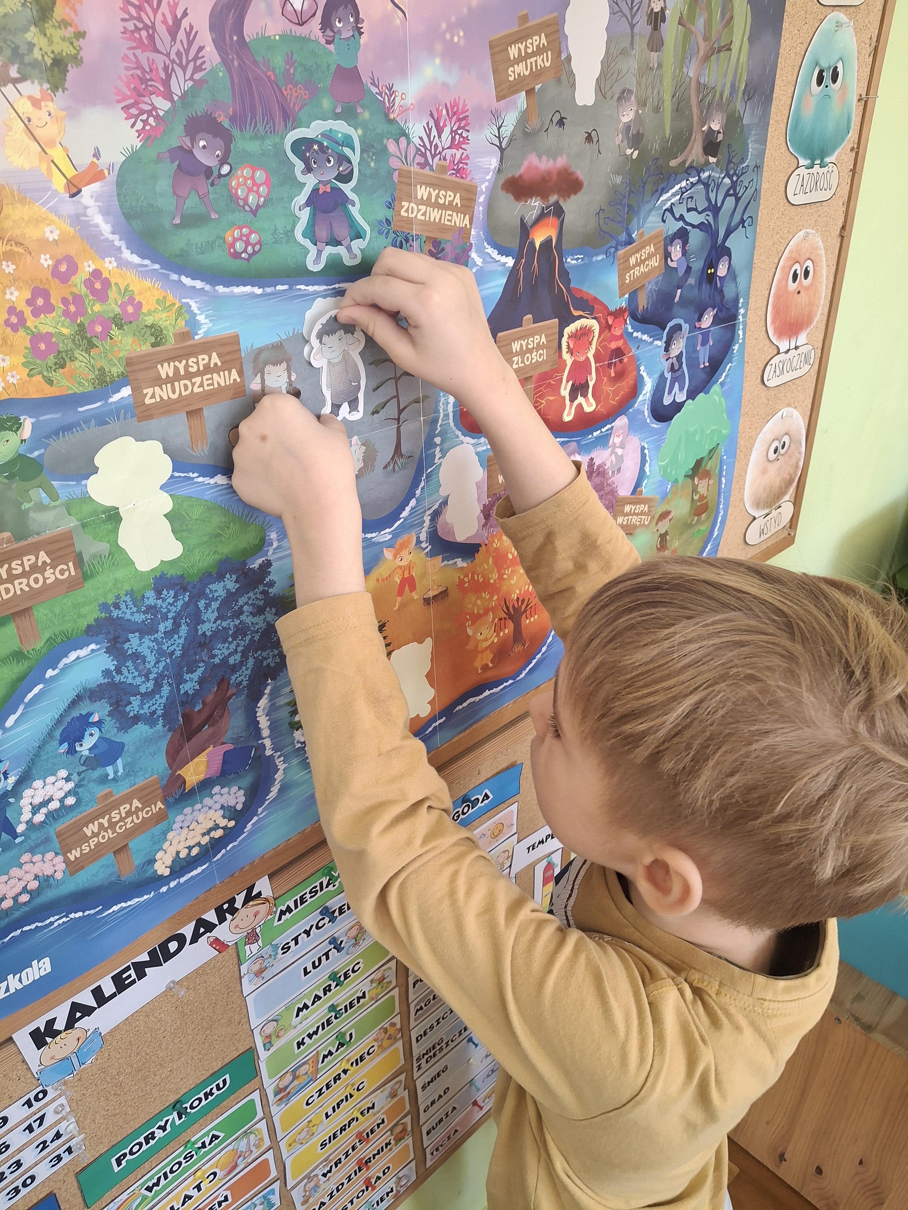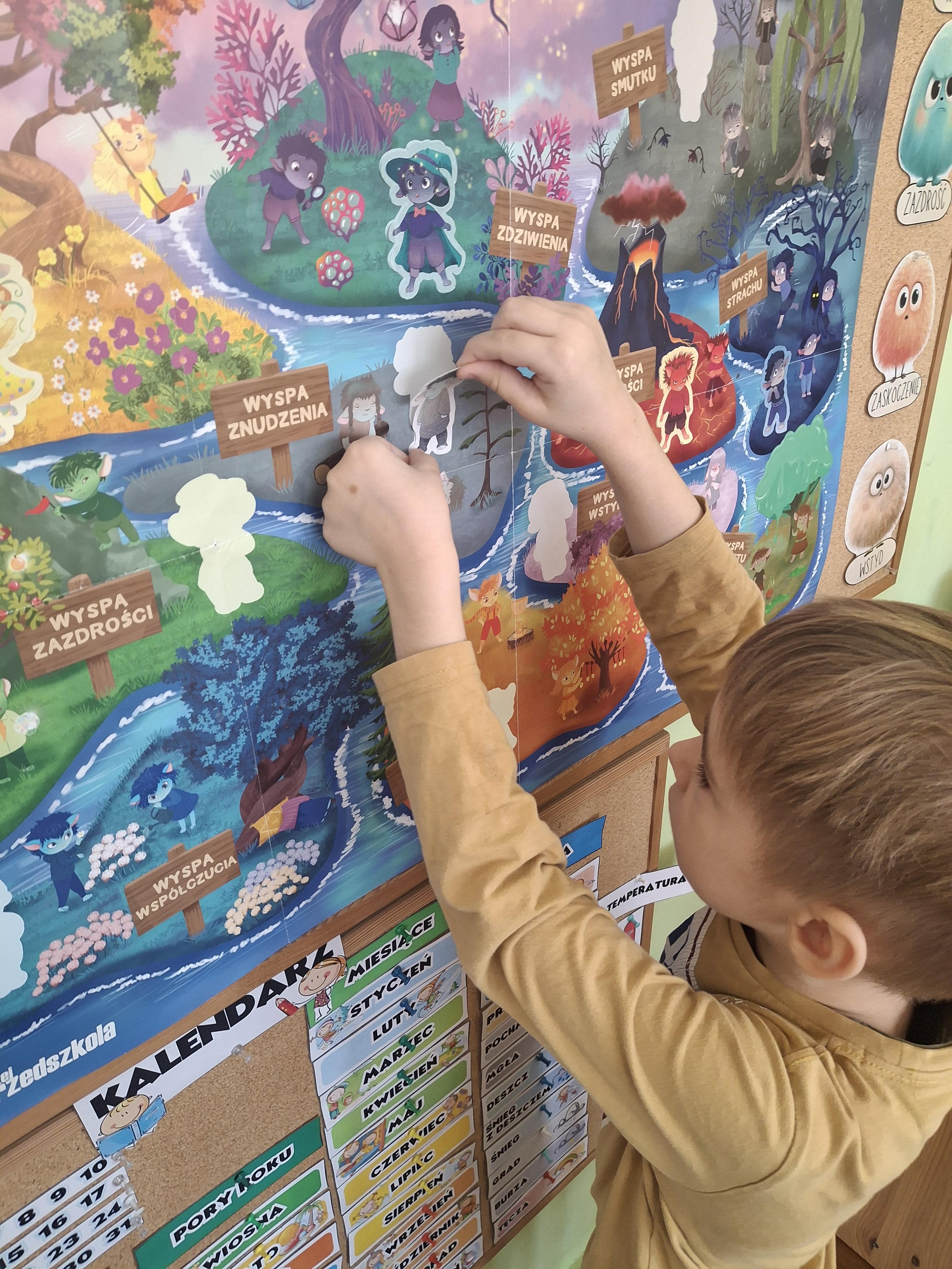 Na zakończenie zajęć duża sylweta Nudka została umieszczona na plakacie projektowym – na Wyspie Znudzenia. Dzieci zastanawiały się, jakie inne emocje mogą tam mieszkać, wymieniając m.in. rozczarowanie, znużenie czy apatię. Rozmowa była okazją do uświadomienia, że wszystkie emocje są ważne i mogą występować z różnym nasileniem.