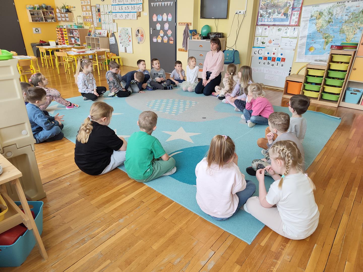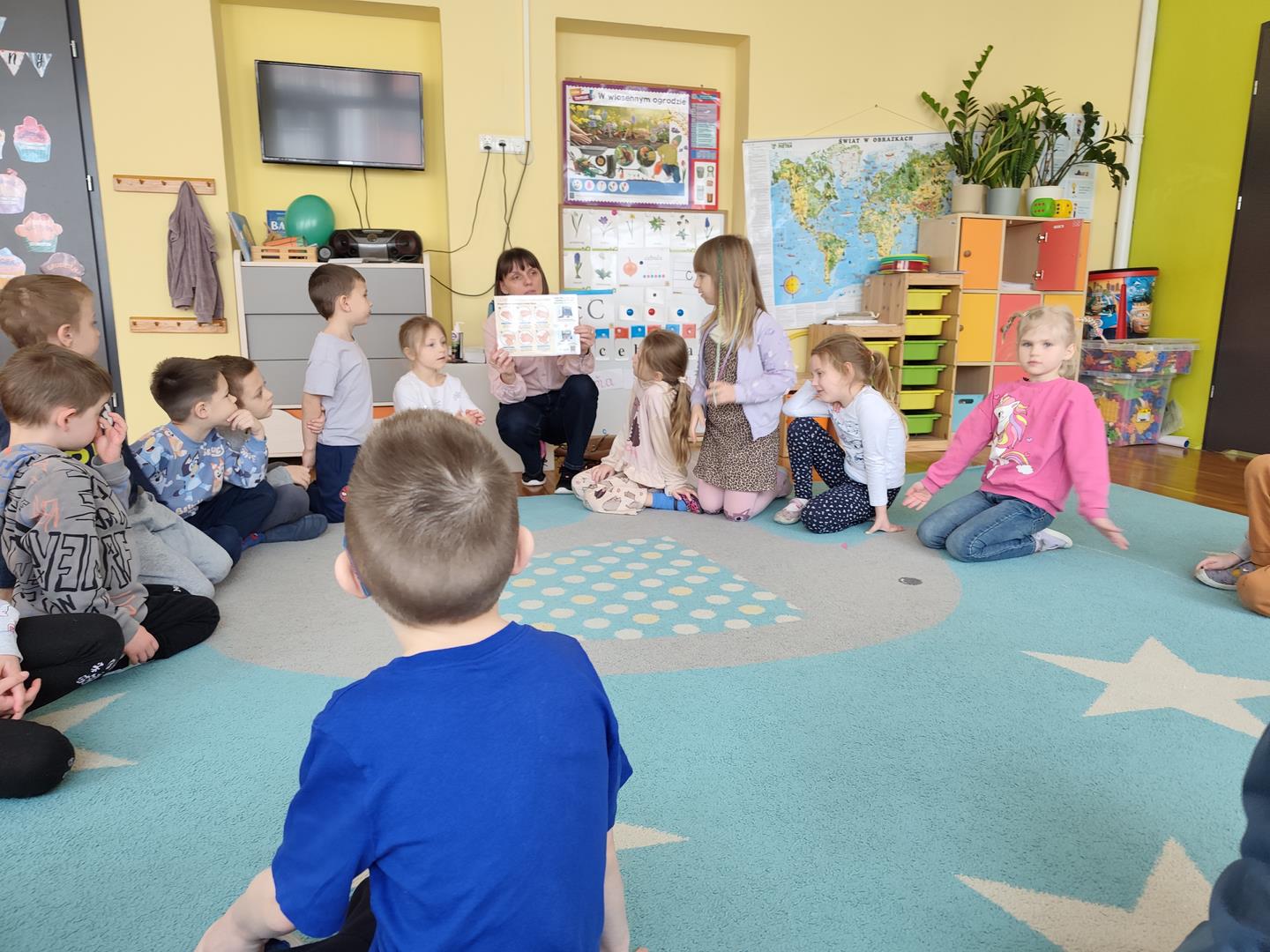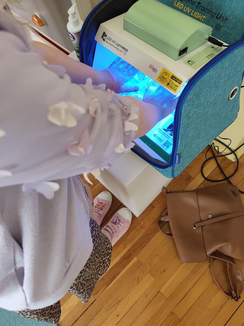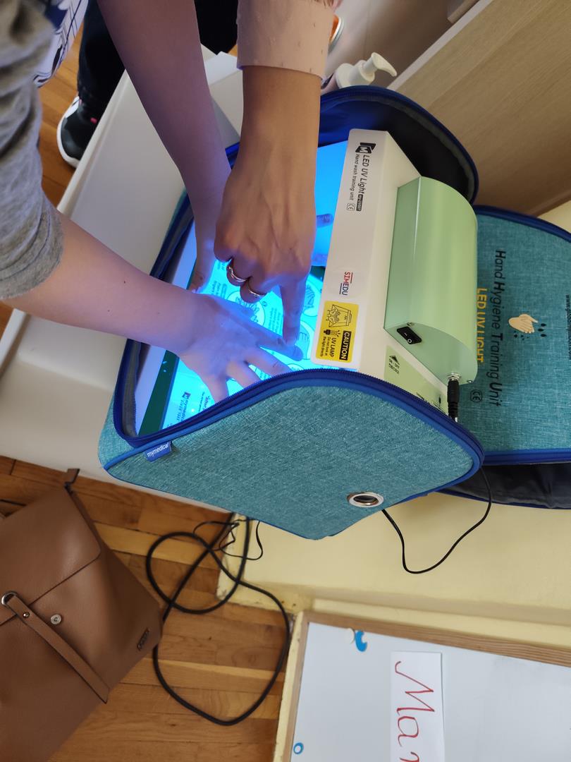 Grupę naszą (i nie tylko) odwiedziła pani z Sanepidu, która przypomniała zasady mycia rąk i przypomiała jak to ważne dla naszego zdrowia. Było ciekawie bo dzieci przekonały się, że do dobrego mycia potrzebne jest mydło i czas. Niby każdy to nie ale nie zawsze to stosuje, ale maszyna pani z Sanepidu prawdę mówiła jak to było .
