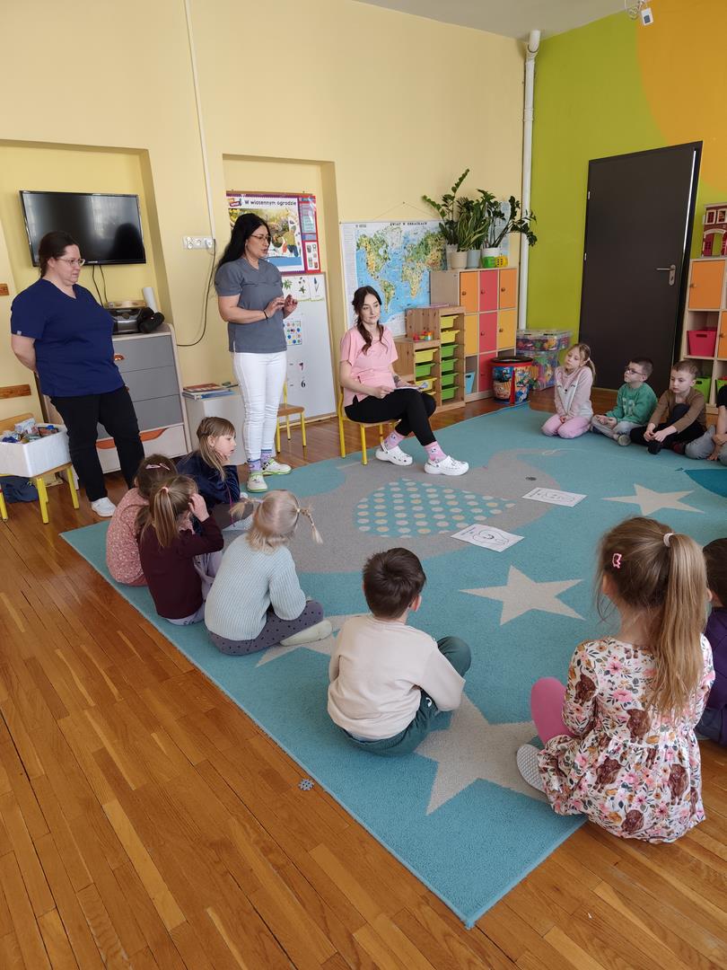 Przedszkole odwiedziły panie higienistki , któr przypomniały dzieciom jak należy dbać o zdrowie ząbków.
