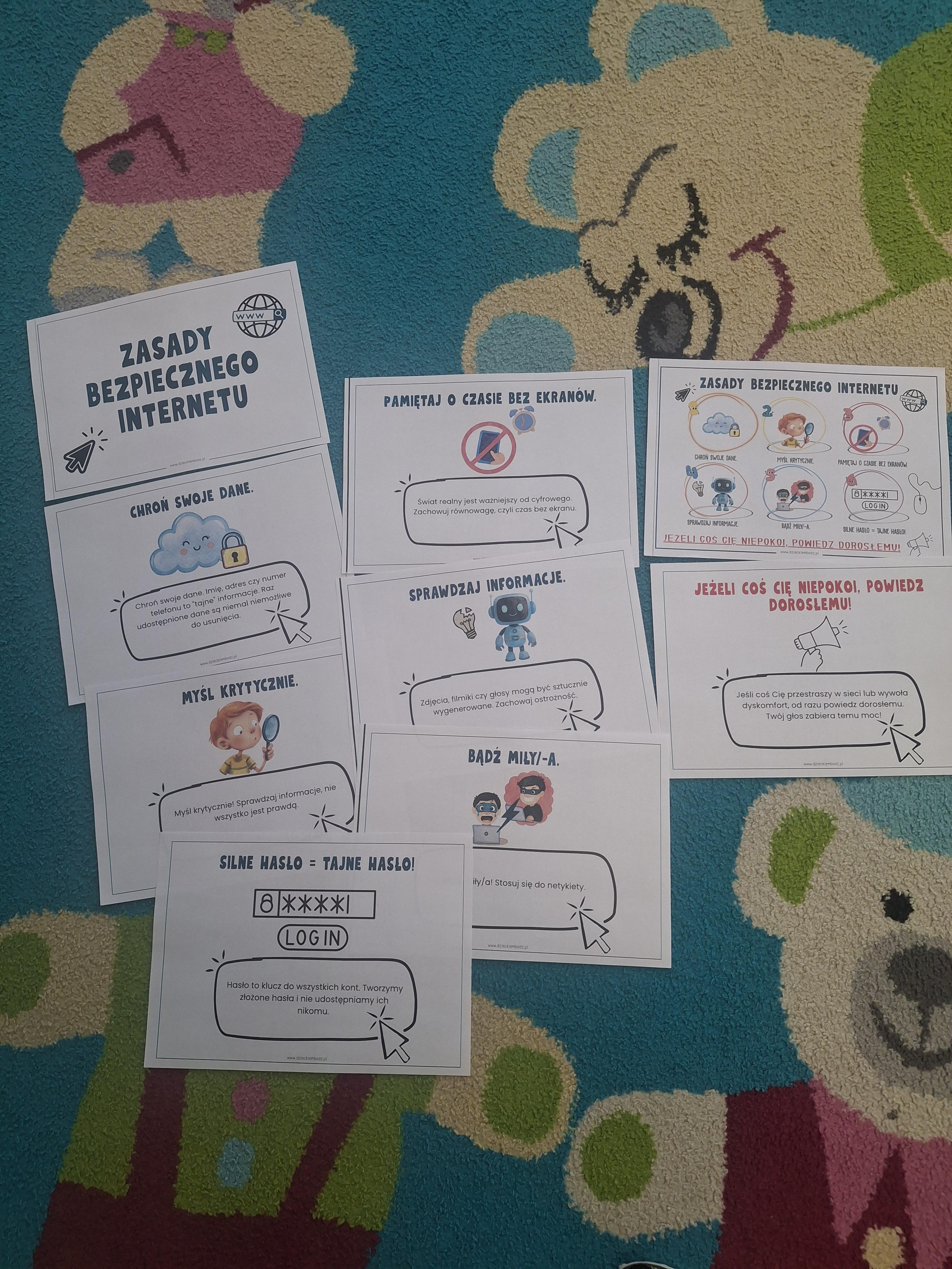 W ramach obchodów dzieci poznały również podstawowe zasady bezpiecznego korzystania z Internetu. Rozmawialiśmy o tym, jak ważne jest zachowanie ostrożności w sieci, niepodawanie swoich danych osobowych oraz informowanie dorosłych o niepokojących sytuacjach.