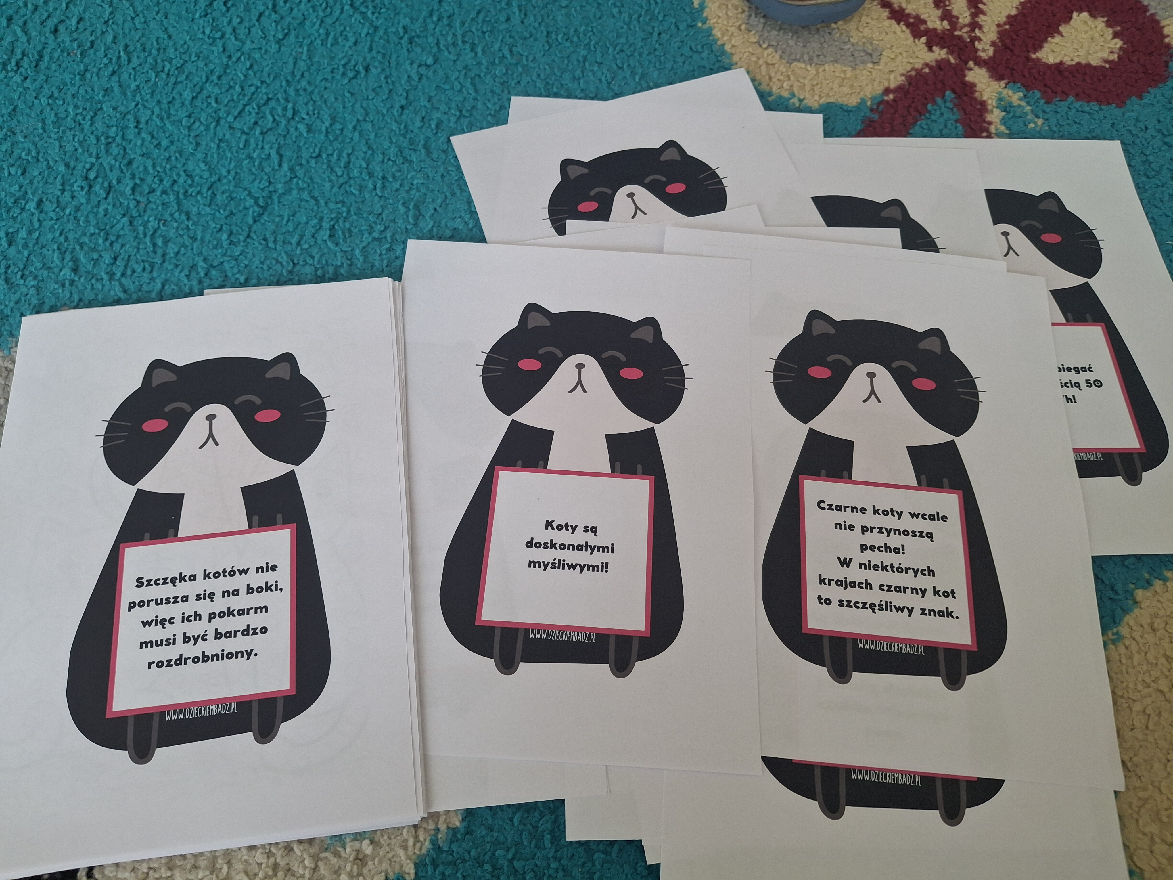 Poznaliśmy także ciekawostki o kotach – dowiedzieliśmy się m.in., dlaczego koty mruczą, jak wysoko potrafią skakać i dlaczego mają wąsy. Dzieci słuchały z wielkim zainteresowaniem!