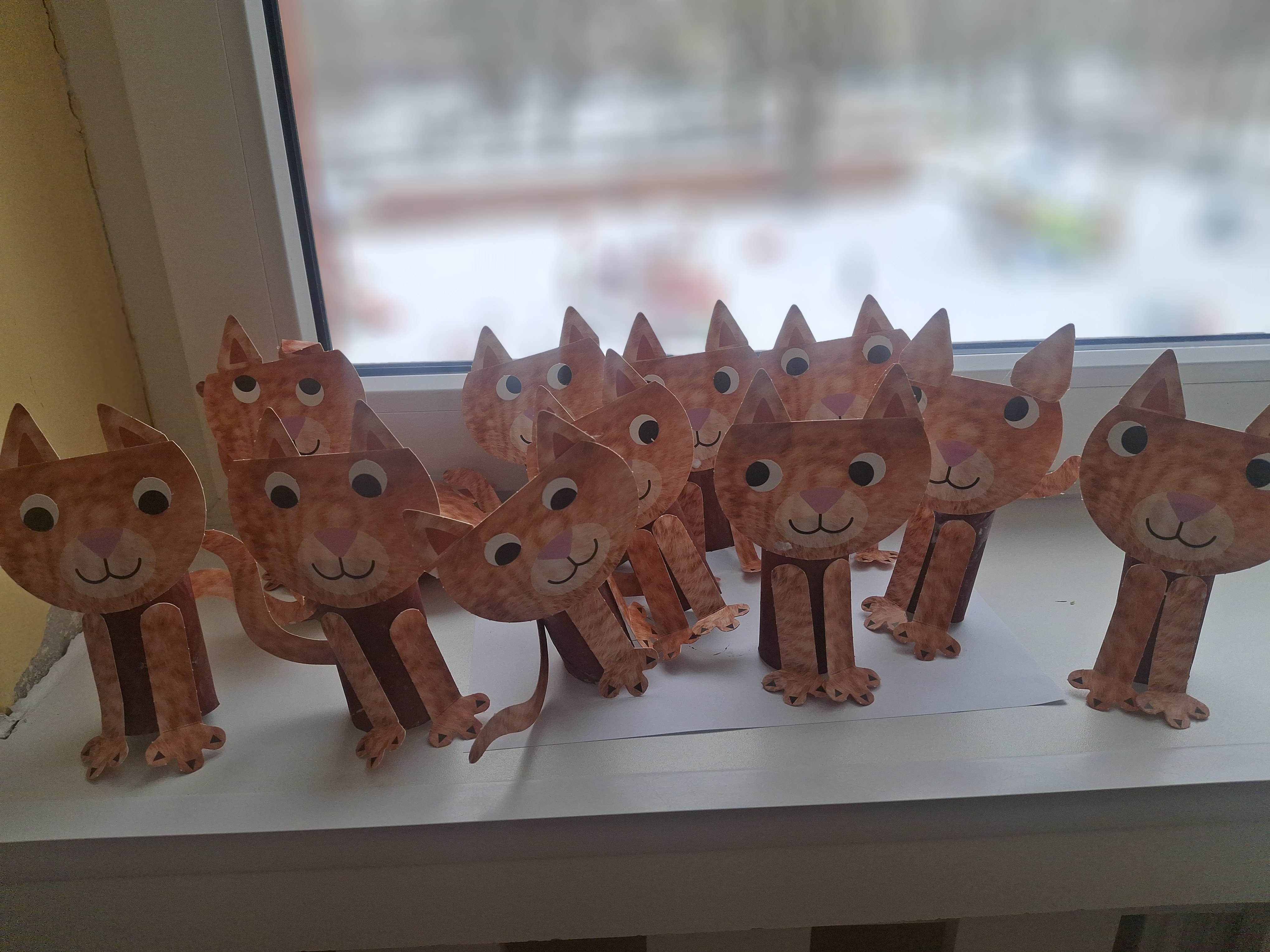 Na zakończenie zajęć przyszedł czas na twórczą pracę plastyczną. Każde dziecko wykonało własnego kotka z rolki po papierze. Powstały przepiękne, kolorowe i bardzo pomysłowe prace – każdy kotek miał swój wyjątkowy charakter.