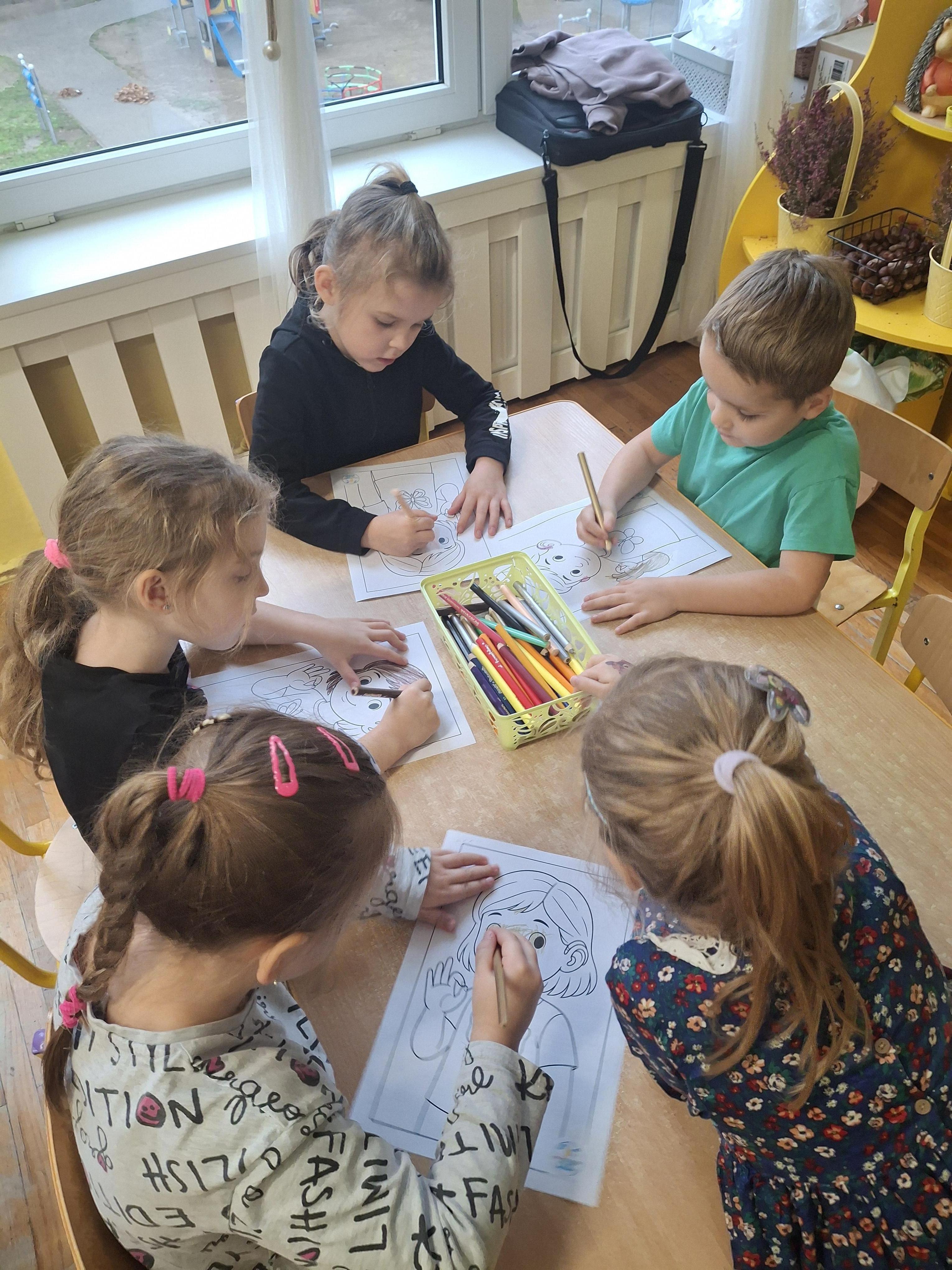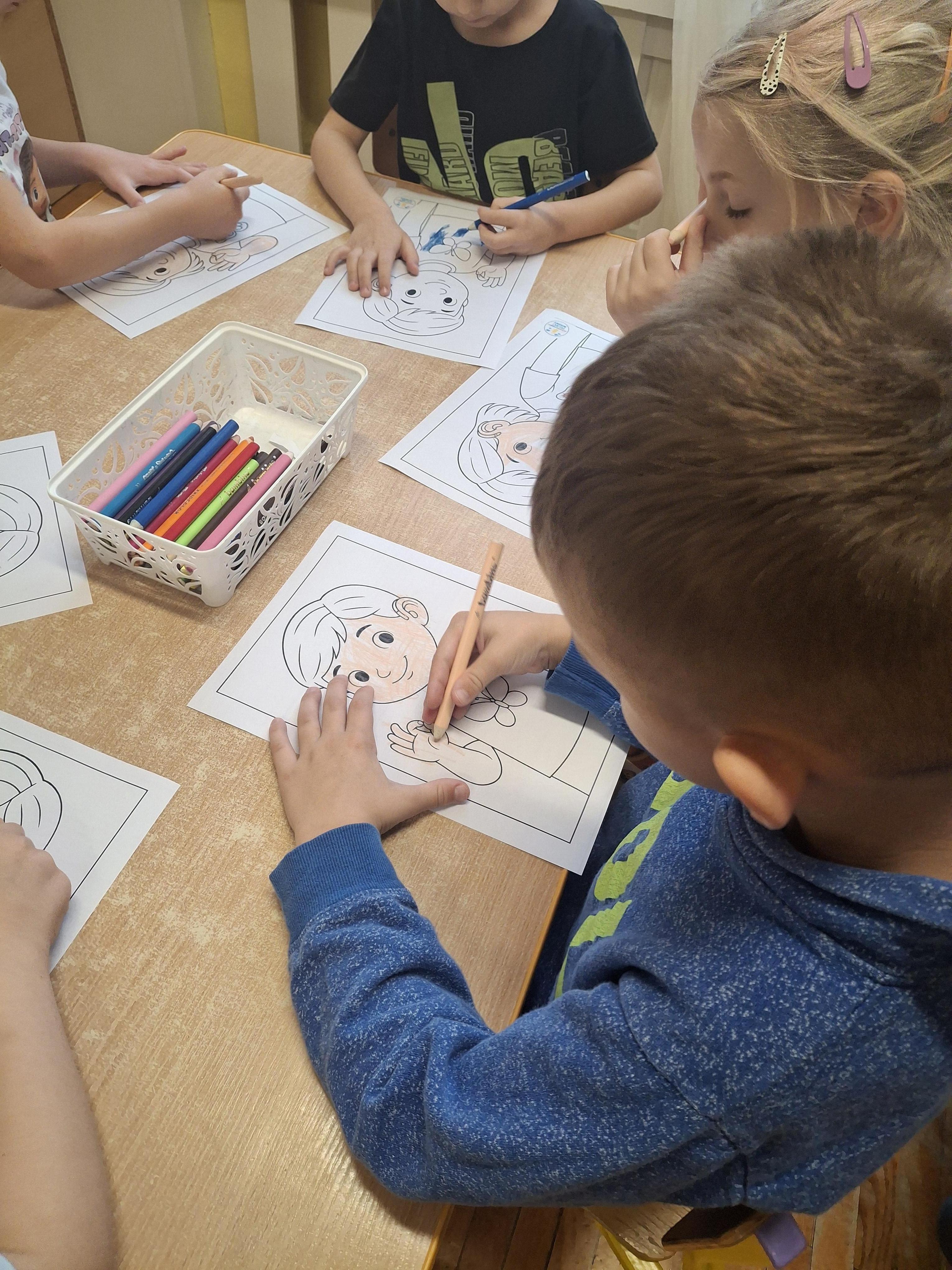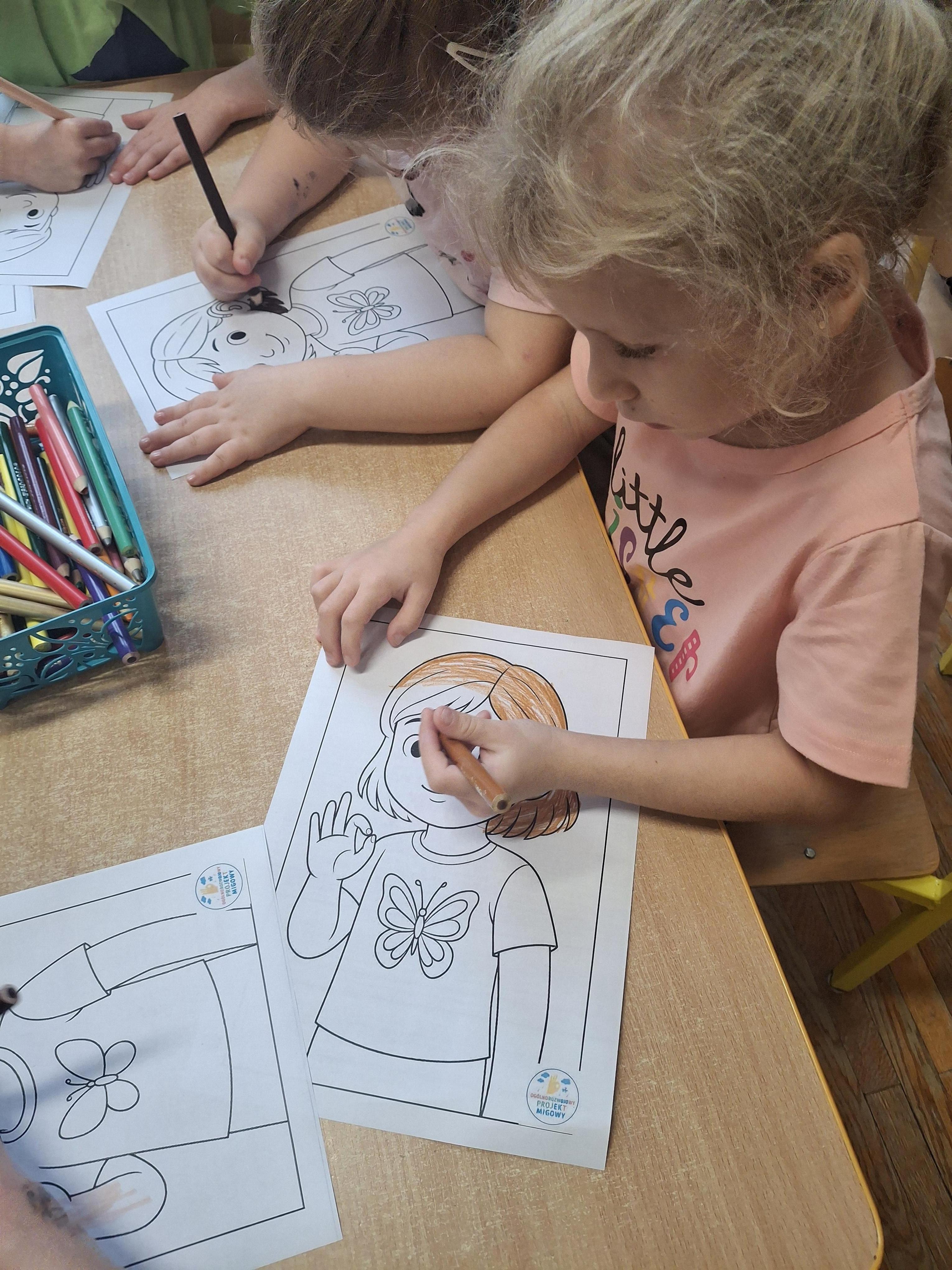 Podczas zajęć Misie pokolorowały także ilustracje przedstawiające dzieci migające, dowiedziały się, co to jest aparat słuchowy oraz dlaczego motyl jest symbolem osób niesłyszących Powstała z tego piękna gazetka, która już zdobi naszą salę!