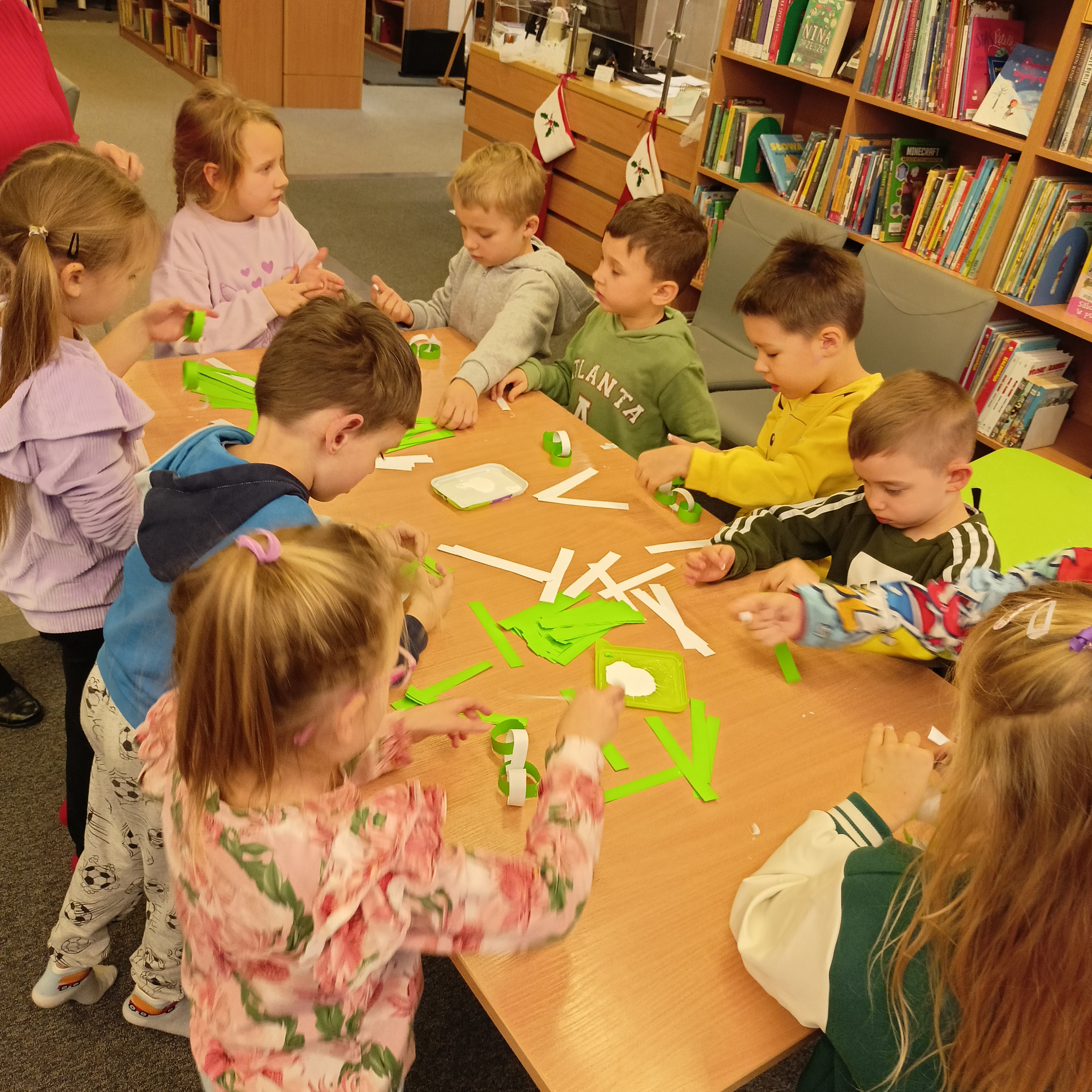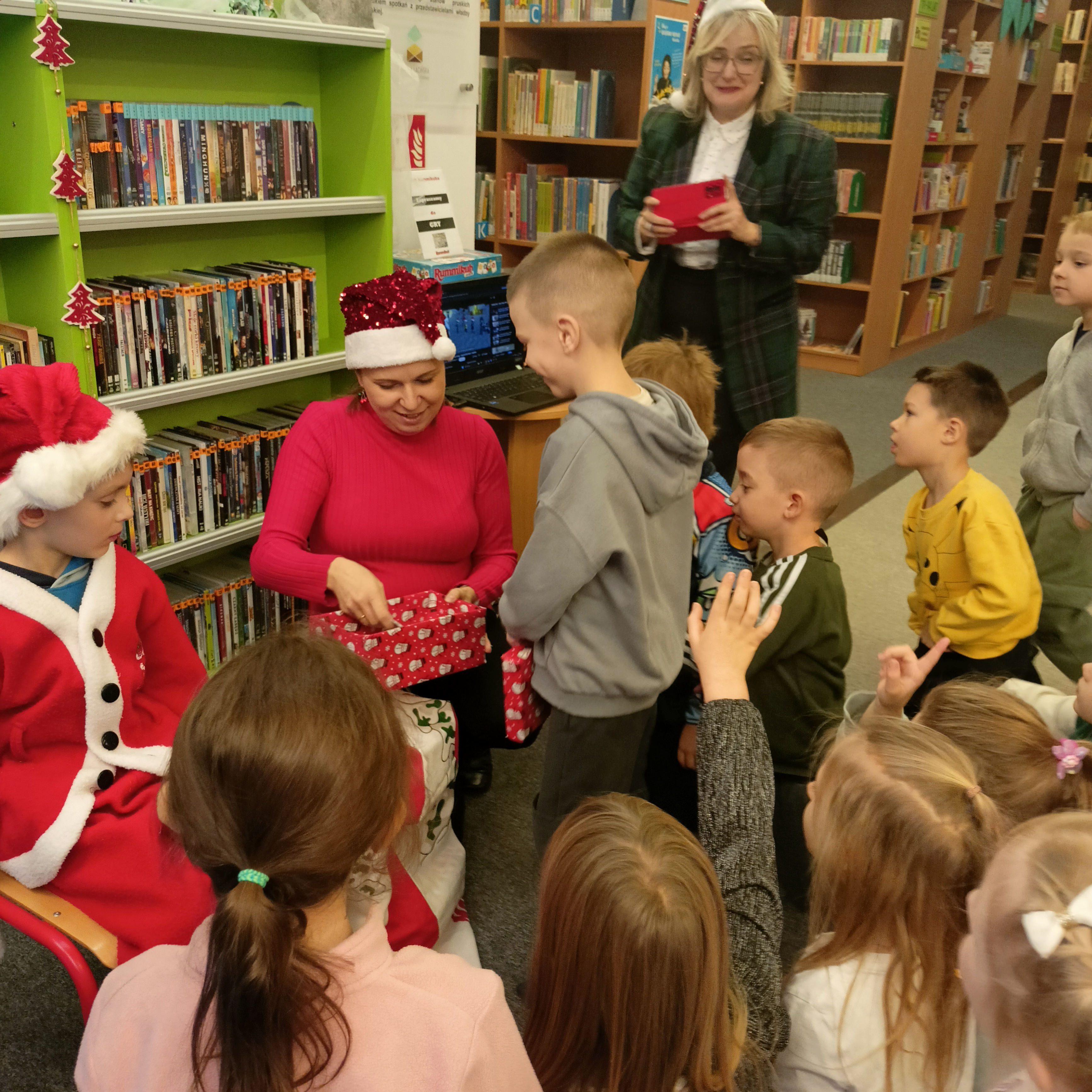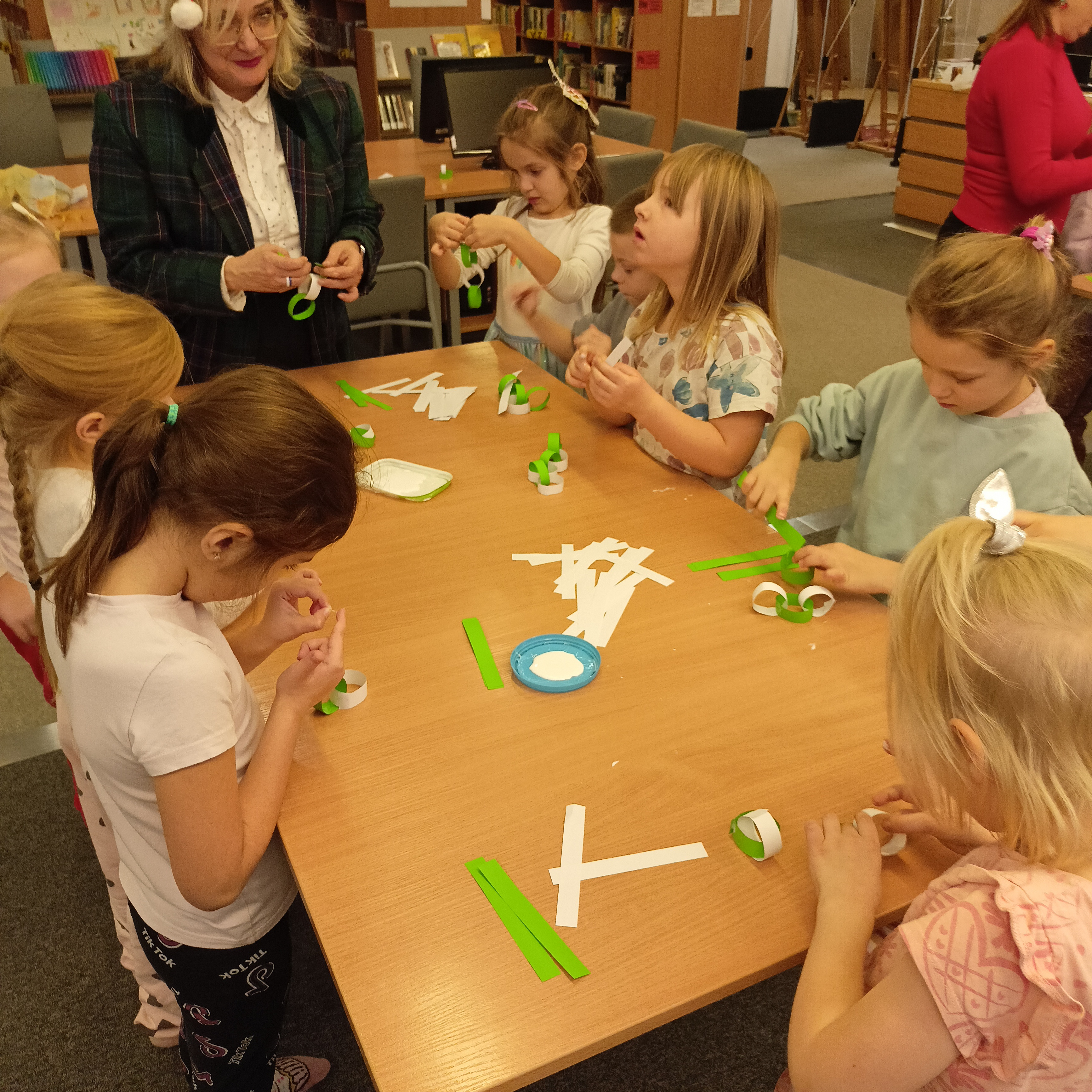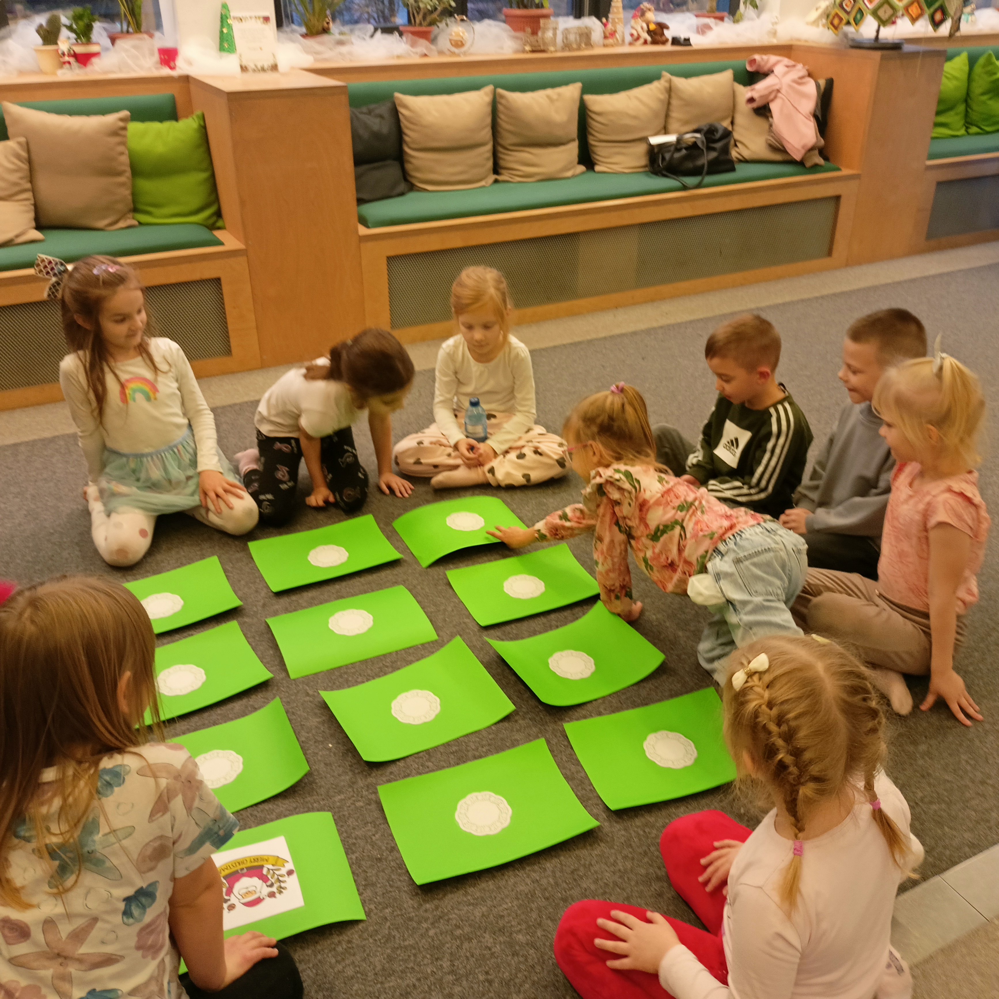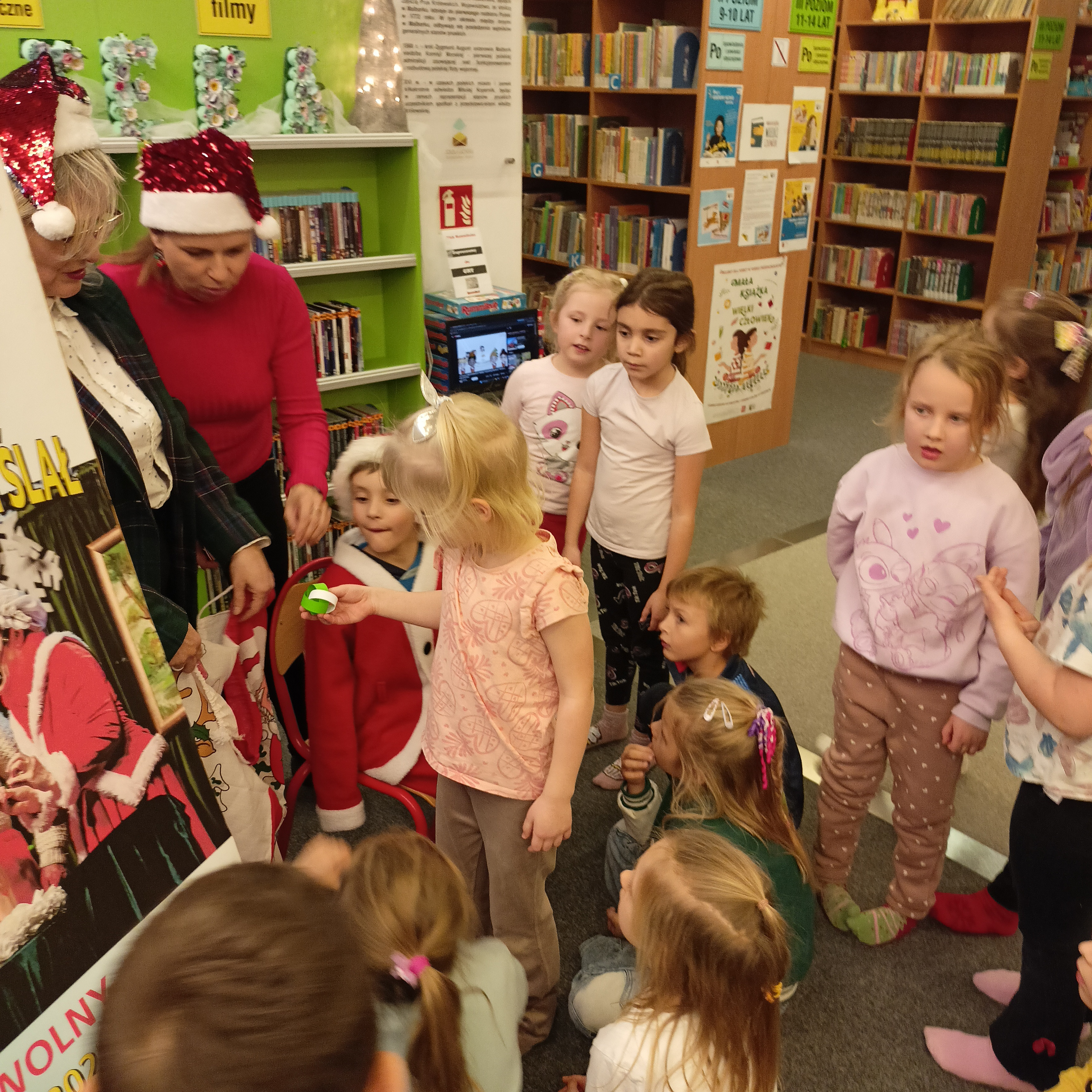 4 grudnia byliśmy na zajęciach Mikołajkowych w Mediatece. Bawiliśmy się wspanialep. Rozalia i Grześ odegrali role w mądrej bajce o zajączkach. Wspólnie szukaliśmy ukrytych w bibliotece na półkach 31 krasnoludków - nie odnaleźliśmy jednego. Poćwiczyliśmy i stworzyliśmy 35 metrów choinkowego łańcucha. Było super.