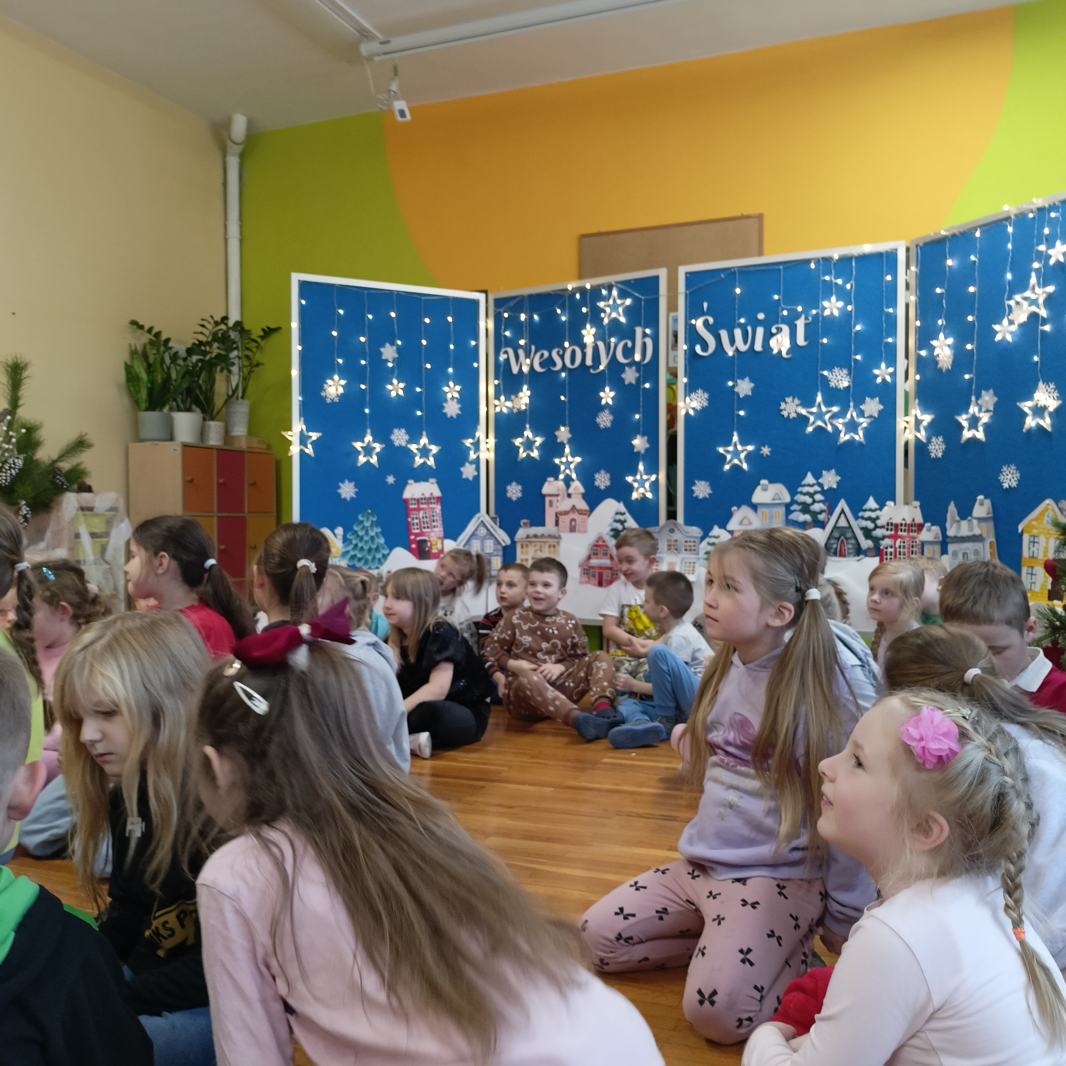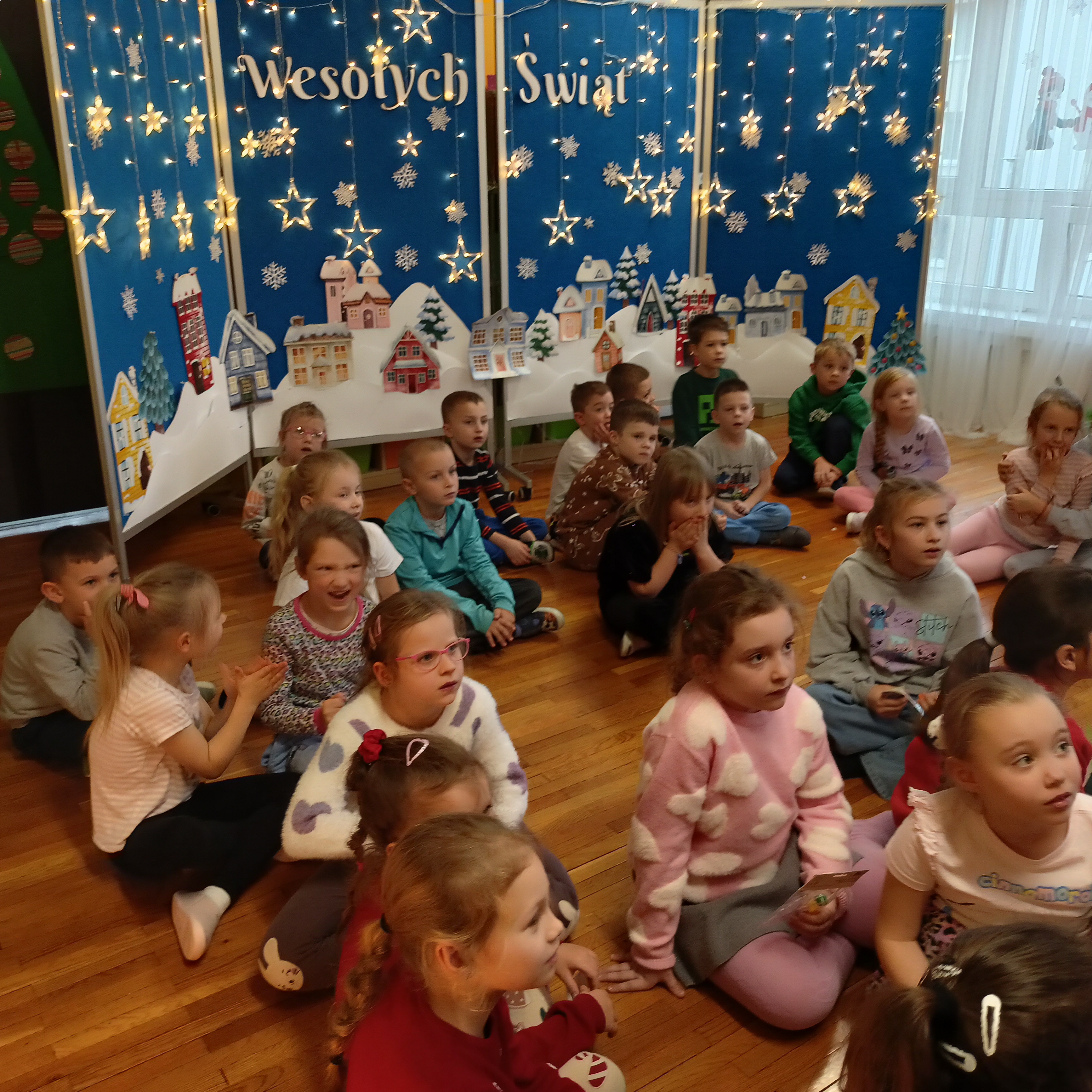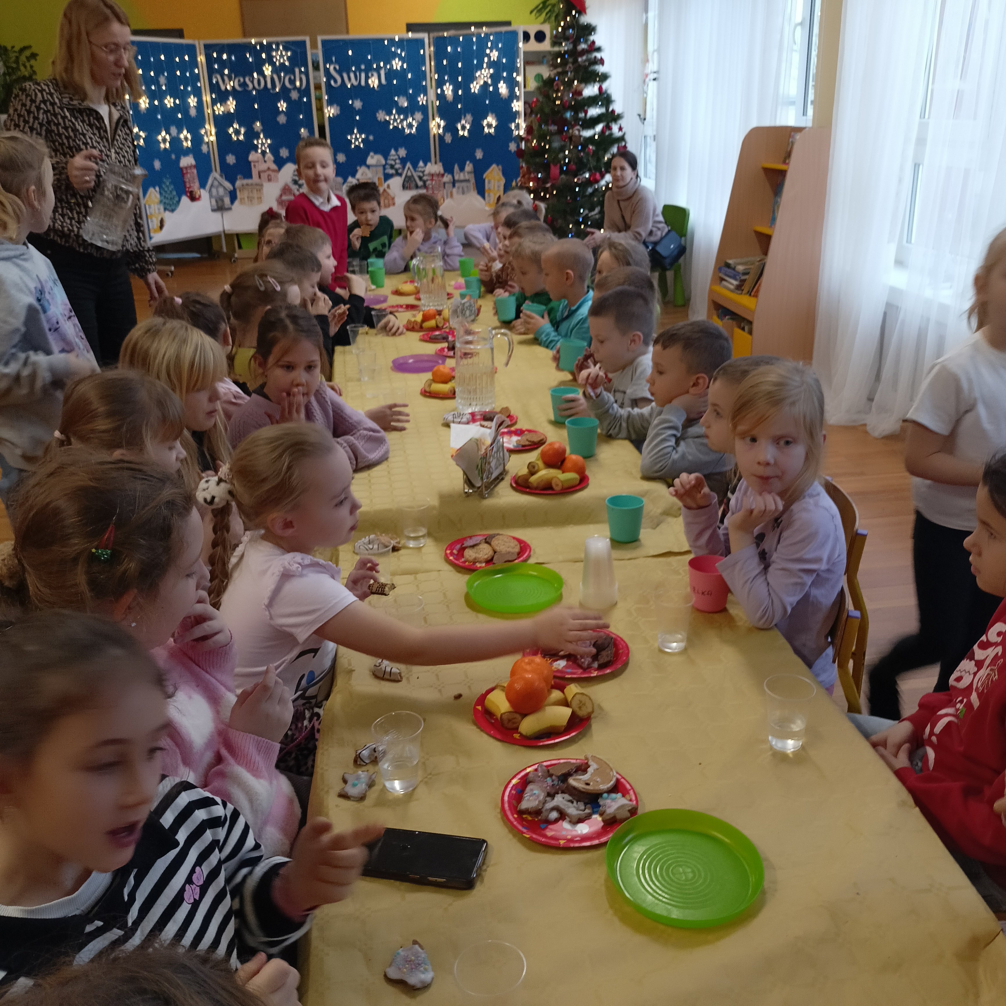 18 grudnia gościlismy kolegów ze SP nr 1. Zaśpiewaliśmy wspólnie nasze piosenki świąteczne, pobawiliśmy siętanecznie do mikołajkowych przebojów, poczęstowaliśmy się owocami i piernikami oraz wręczyliśmy sobie upominki. Było fajnie.