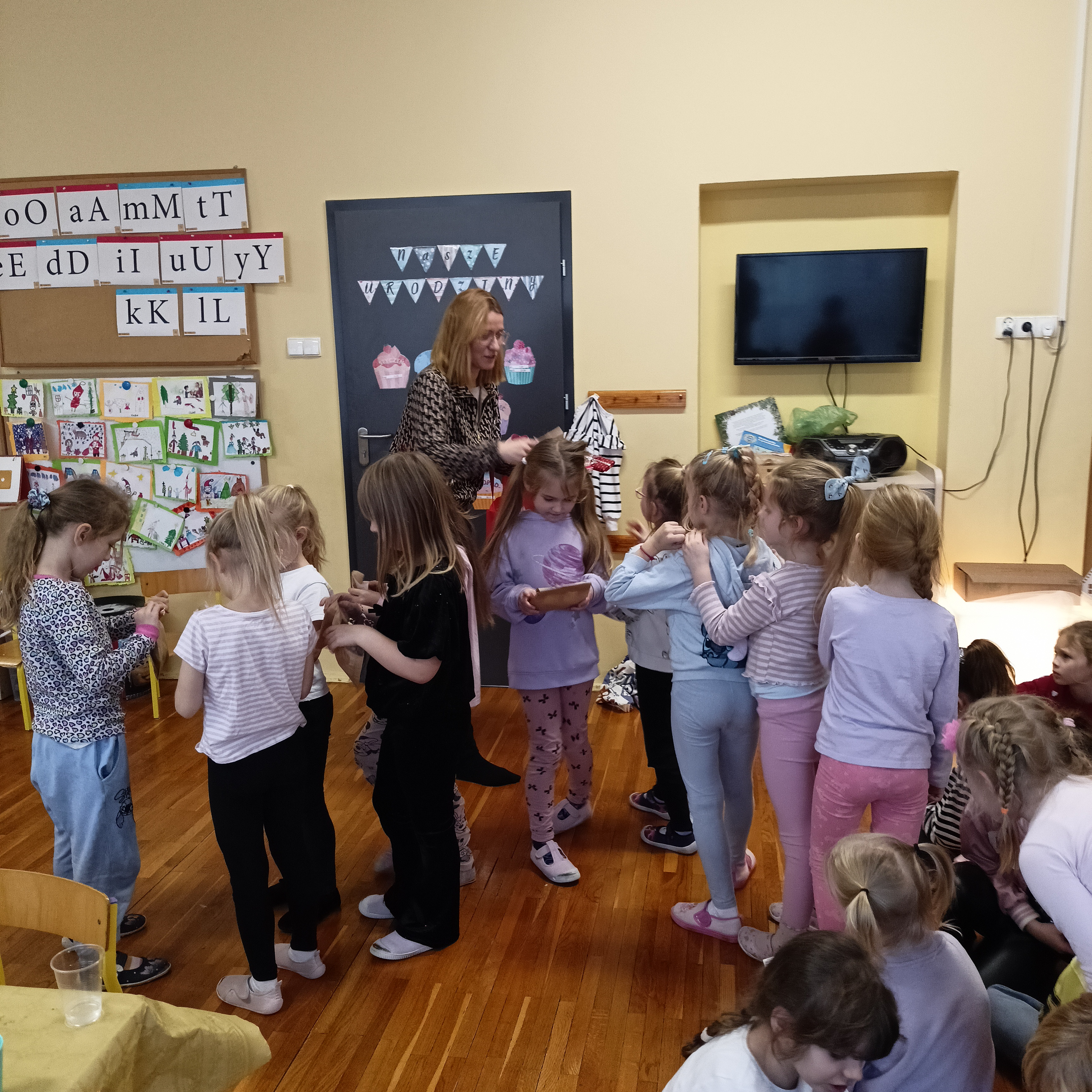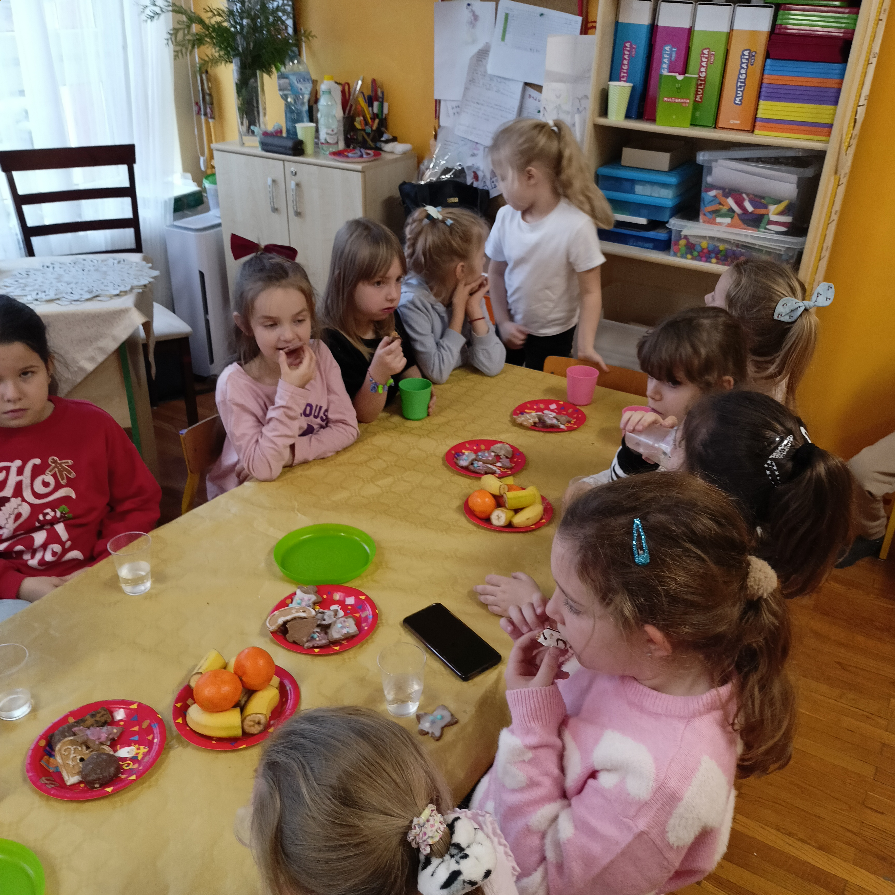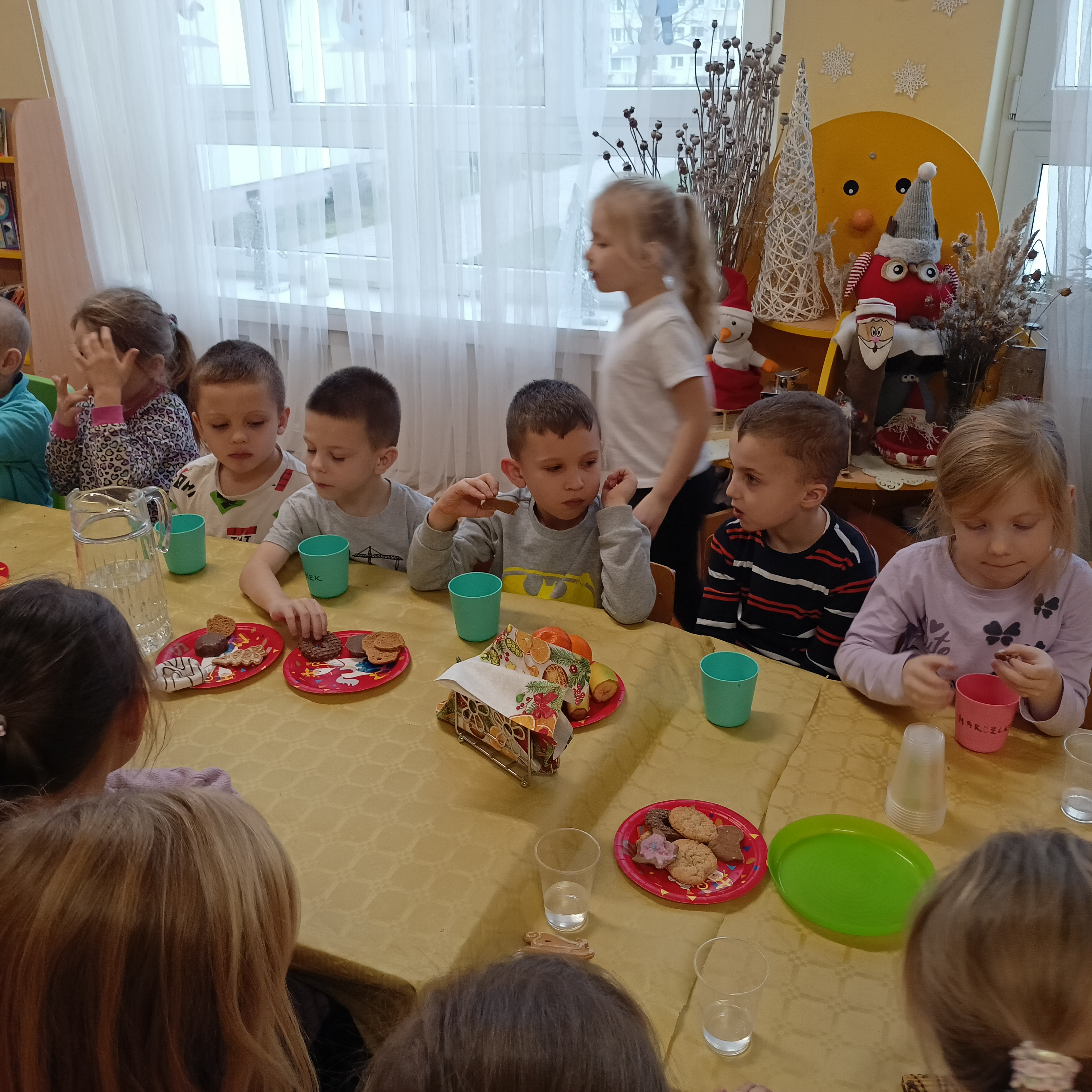 18 grudnia gościlismy kolegów ze SP nr 1. Zaśpiewaliśmy wspólnie nasze piosenki świąteczne, pobawiliśmy siętanecznie do mikołajkowych przebojów, poczęstowaliśmy się owocami i piernikami oraz wręczyliśmy sobie upominki. Było fajnie.