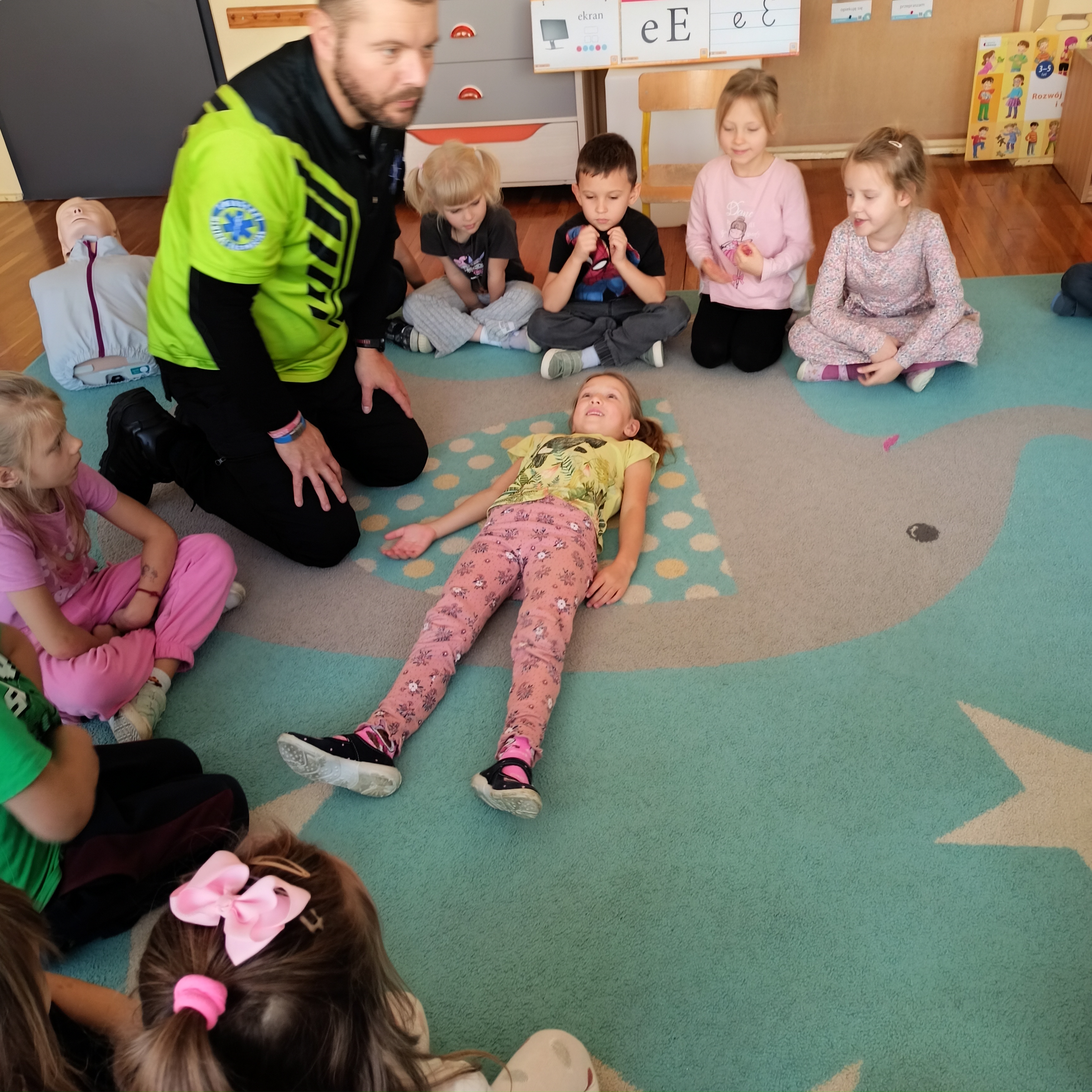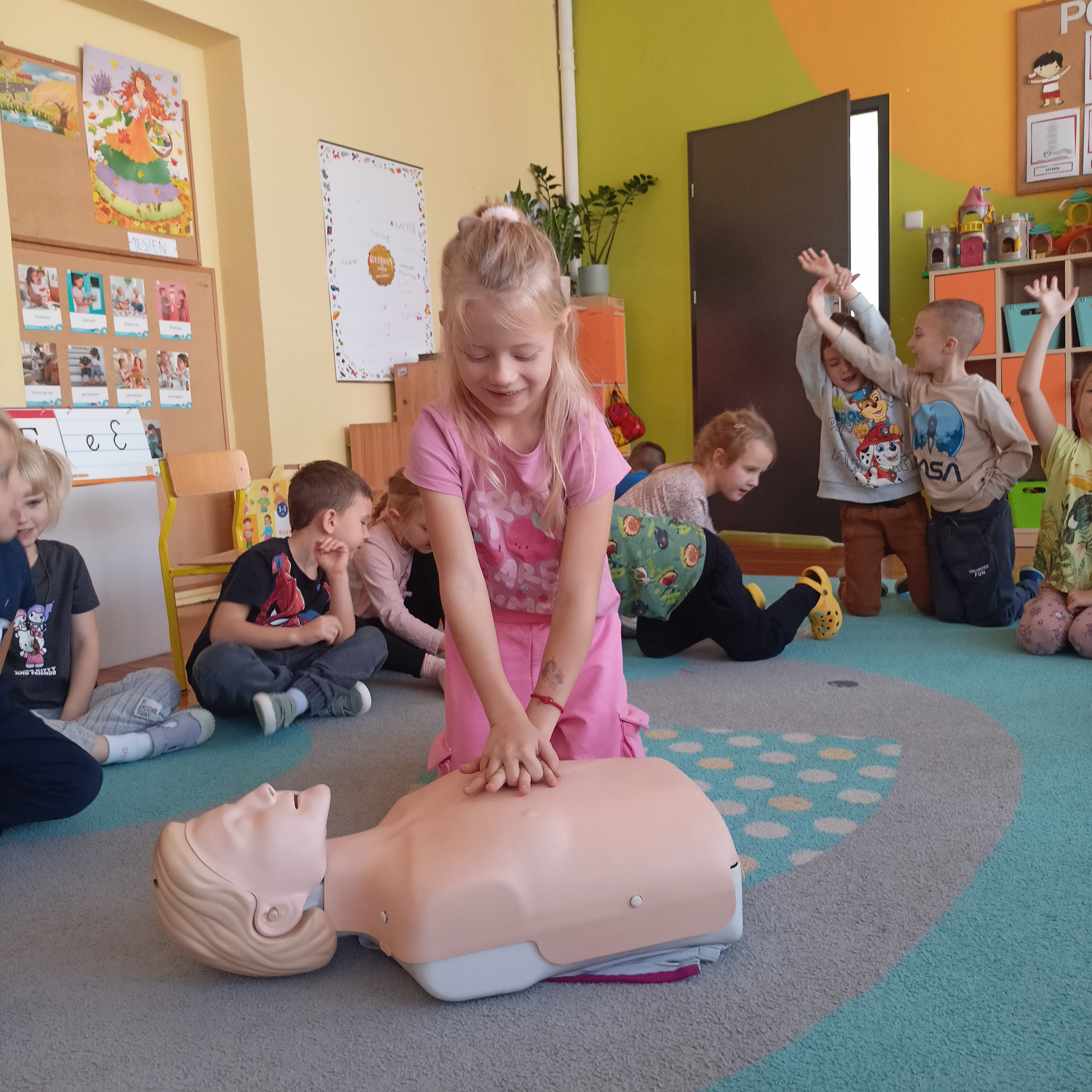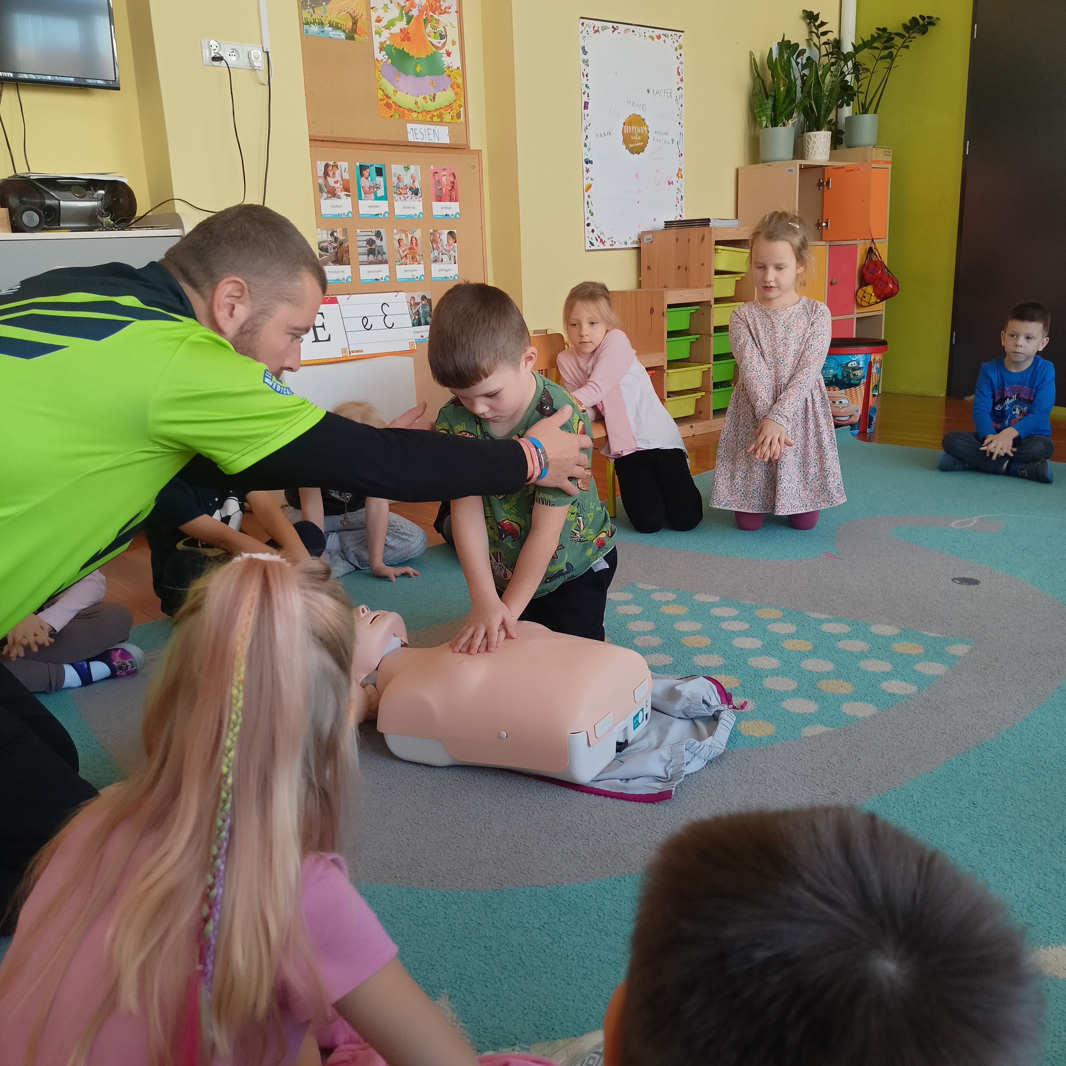 Podczas spotkania zpanem ratownikiem uczyliśmy się , że mimo że jesteśmy mali możemy dokonać wielkich rzeczy - uratować potrzebujacemu życie.