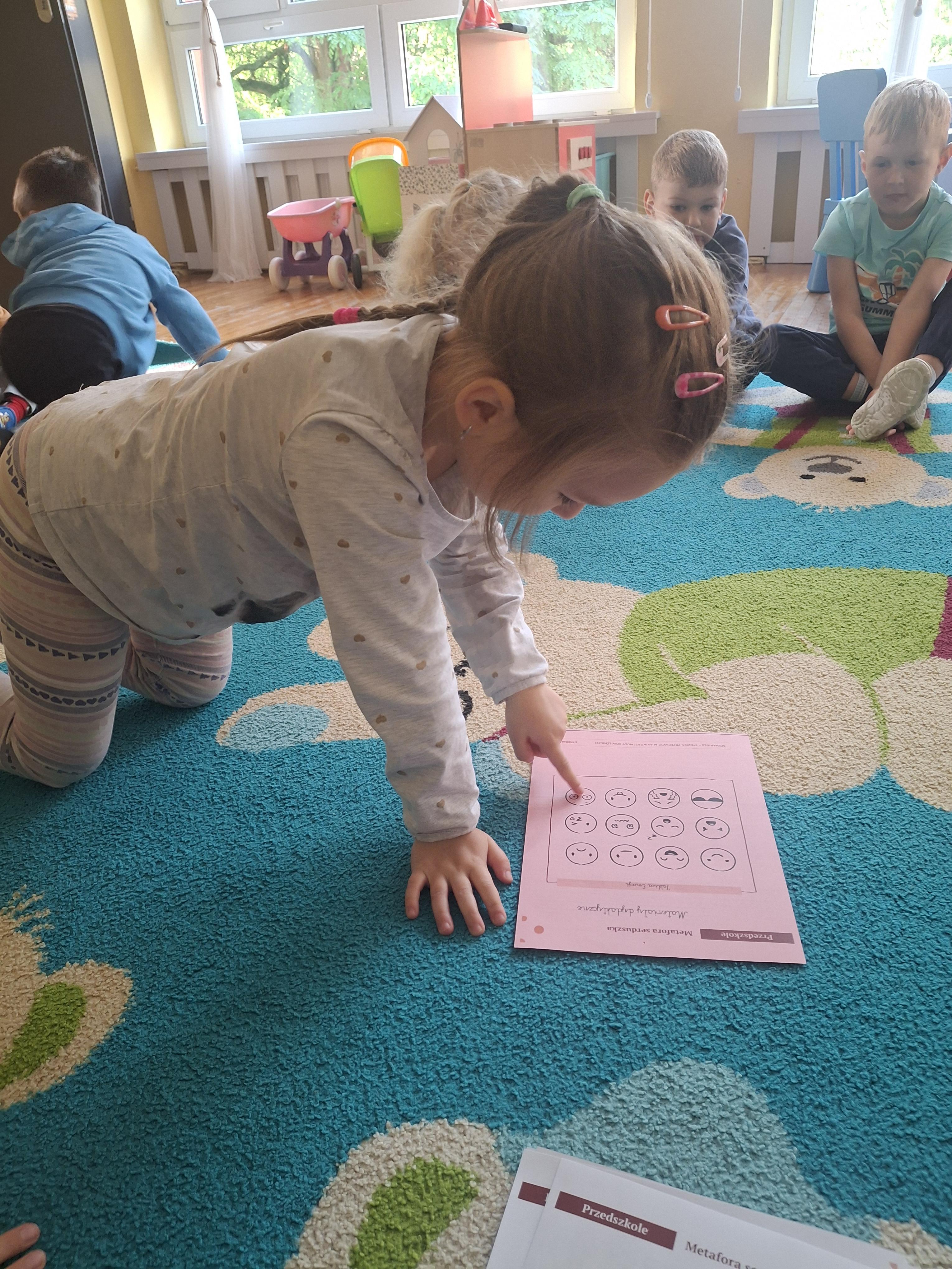 Dzieci wysłuchały opowiadania „Serduszko z listków”, które wprowadziło je w temat uczuć i wzajemnej życzliwości. Następnie samodzielnie wykonały kolorowe serduszka, na których mogły wyrazić swoje emocje. Nie zabrakło także zabaw w formie krótkich scenek sytuacyjnych pod hasłem „Co byś czuł/czuła, gdyby…”, dzięki którym przedszkolaki mogły wczuć się w różne role i zastanowić się nad uczuciami innych osób.