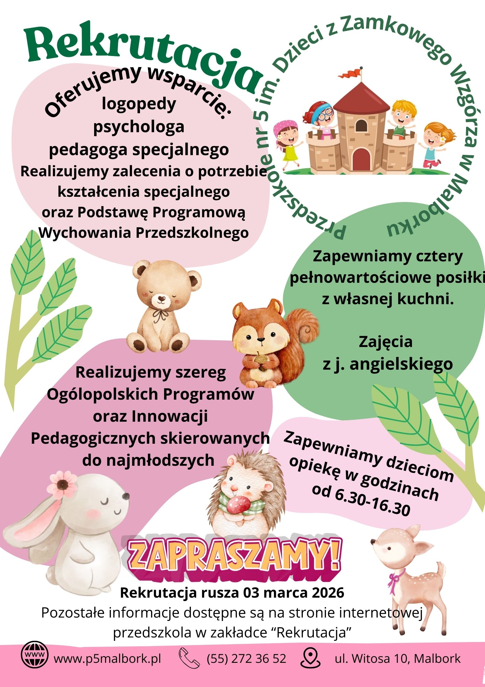 ZAPRASZAMY SERDECZNIE DO PRZEDSZKOLA NR 5 IM. "DZIECI Z ZAMKOWEGO WZGÓRZA" W MALBORKU